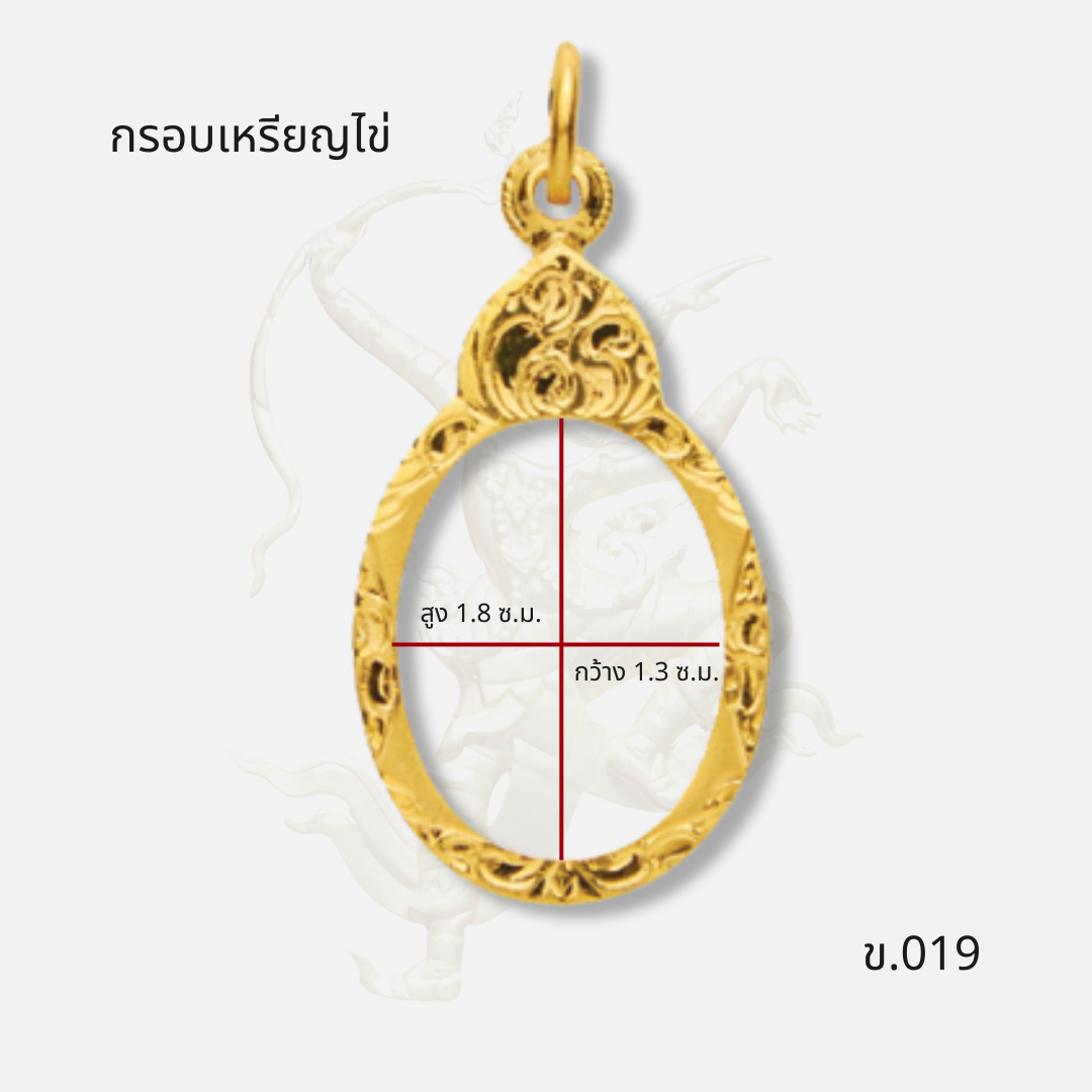 กรอบเหรียญไข่หลวงปู่ทวดเม็ดแดง รหัส ข.019 ถ่ายทอดด้วยงานทองเปอร์เซ็นต์สูงที่ผ่านการขึ้นรูปอย่างประณีต ถ่ายทอดศิลป์งานช่างโบราณลงในรายละเอียดทุกจุด กรอบออกแบบมาเพื่อรองรับเหรียญเม็ดแดงโดยเฉพาะ ทั้งเพื่อการบูชาและการสะสม เพิ่มความสง่างามและคุณค่าเชิงศิลป์ให้กับองค์พระได้อย่างลงตัว เหมาะสำหรับผู้ที่ต้องการงานสะสมคุณภาพสูงและมีเอกลักษณ์